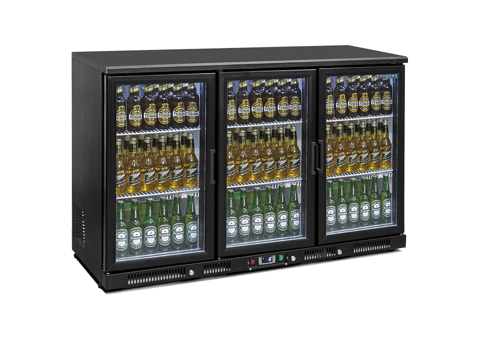 Frenox BB350 Bar Tipi Şişe Soğutucu Cam 3 Kapılı Siyah